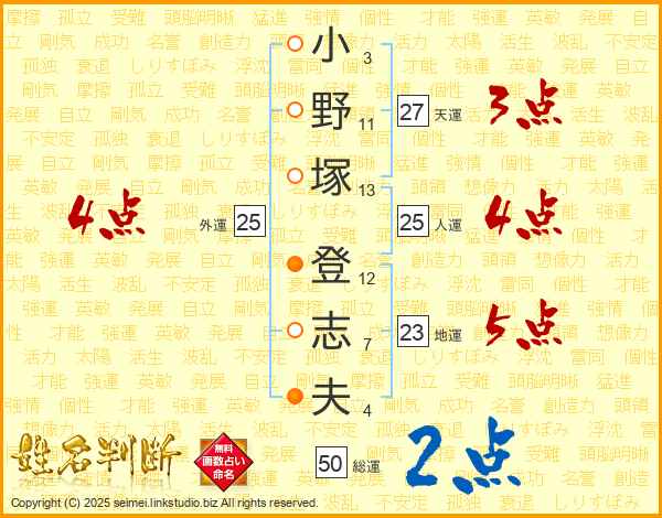小野塚登志夫さんの天運は27画の3点!