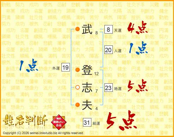 武(8画) 登(12画)志(7画)夫(4画)