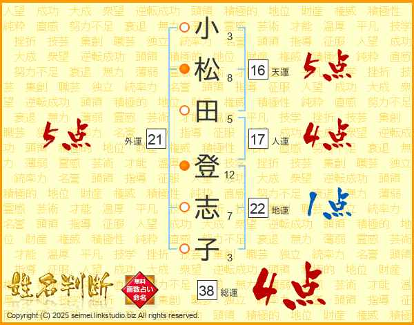 小松田登志子さんの総運は38画の4点!