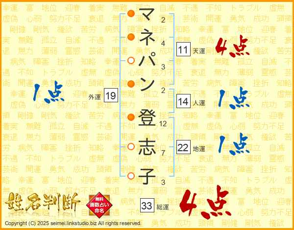 マネパン登志子さんの総運は33画の4点!