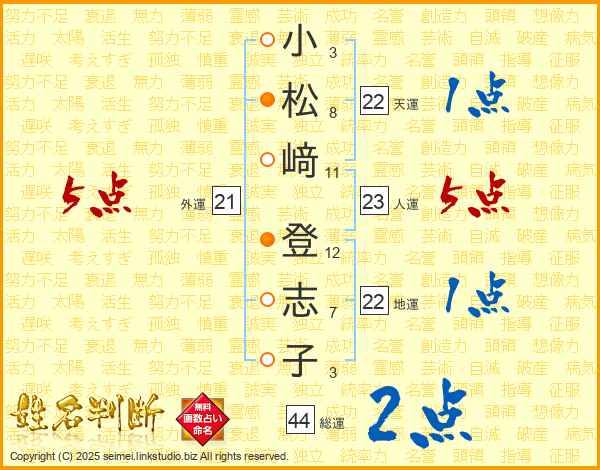 小(3画)松(8画)﨑(11画) 登(12画)志(7画)子(3画)