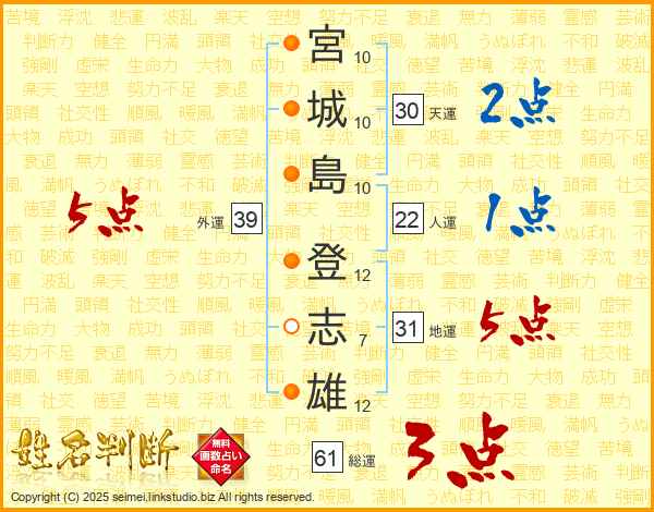 宮城島登志雄さんの地運は31画の5点!