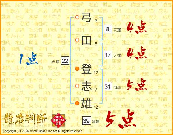 弓田登志雄さんの総運は39画の5点!
