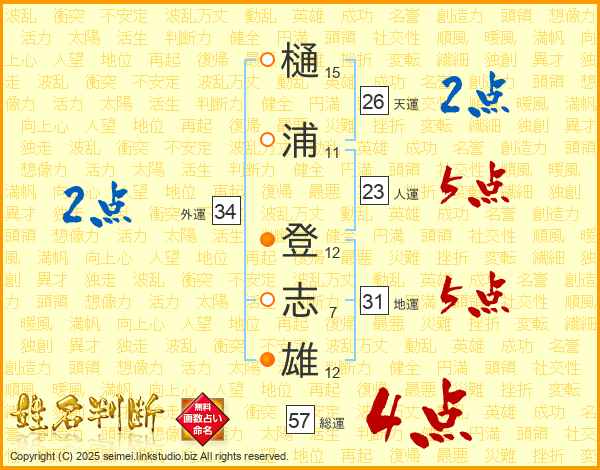 樋(15画)浦(11画) 登(12画)志(7画)雄(12画)