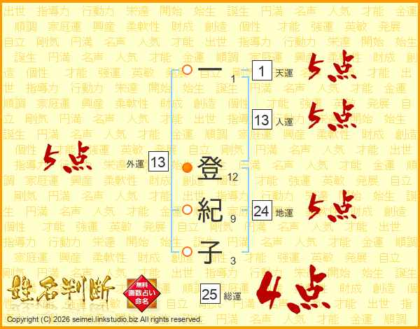 一登紀子さんの総運は25画の4点!
