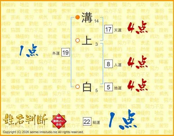 溝上白さんの天運は17画の4点!