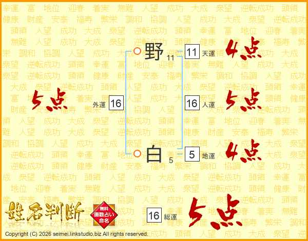 野白さんの総運は16画の5点!