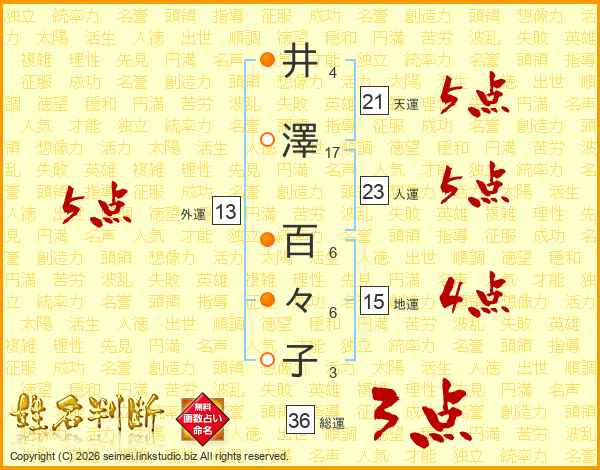 井(4画)澤(17画) 百(6画)々(6画)子(3画)