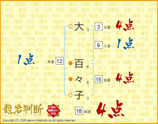 大百々子さんの総運は18画の4点!