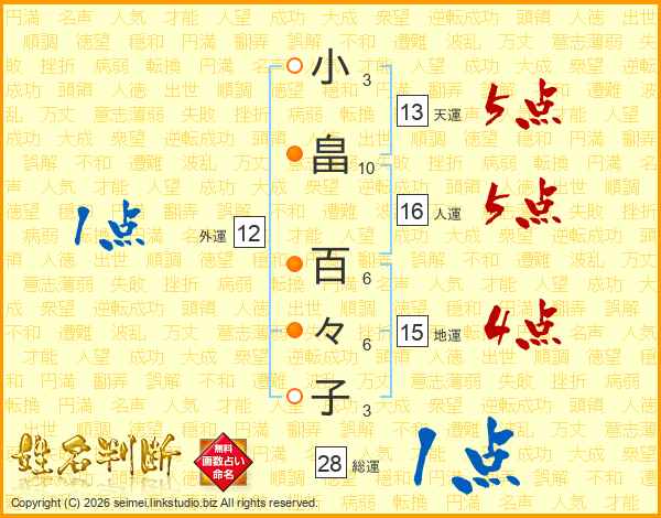 小(3画)畠(10画) 百(6画)々(6画)子(3画)