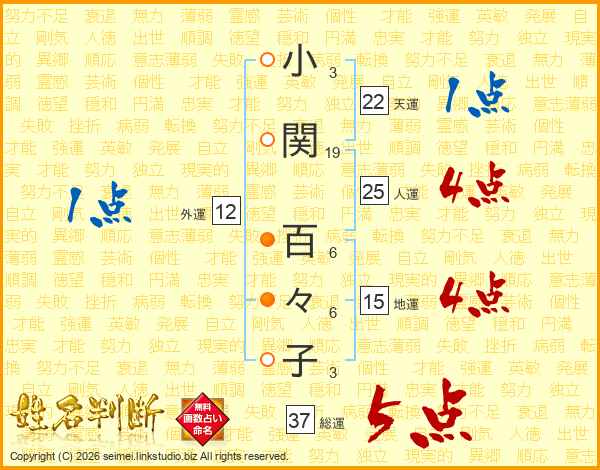 小関百々子さんの人運は25画の4点!
