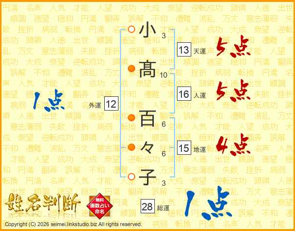 小髙百々子さんの天運は13画の5点!