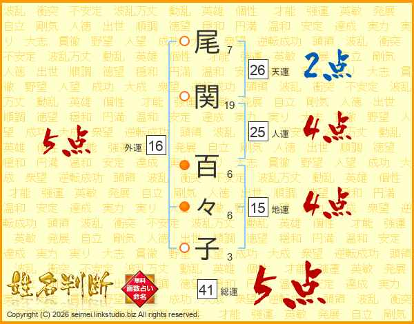尾関百々子さんの総運は41画の5点!
