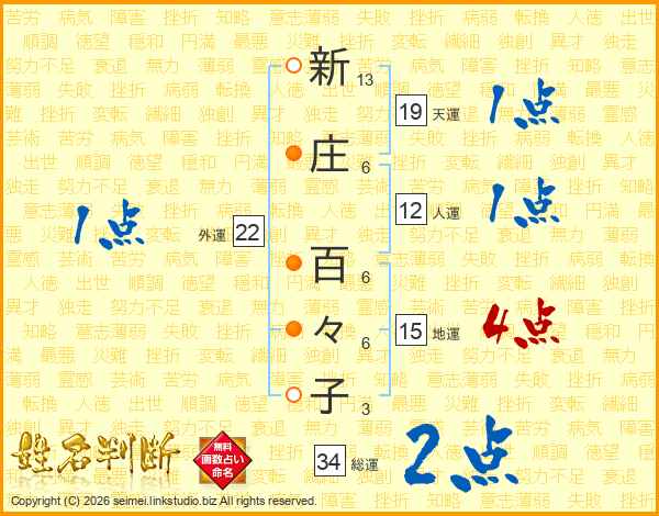 新庄百々子さんの総運は34画の2点!