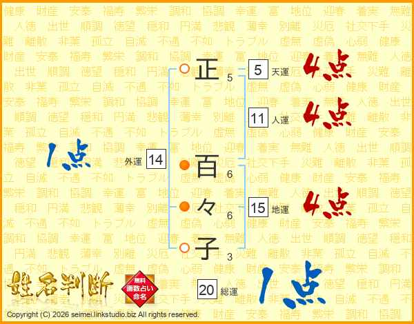 正百々子さんの総運は20画の1点!