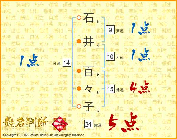 石井百々子さんの総運は24画の5点!