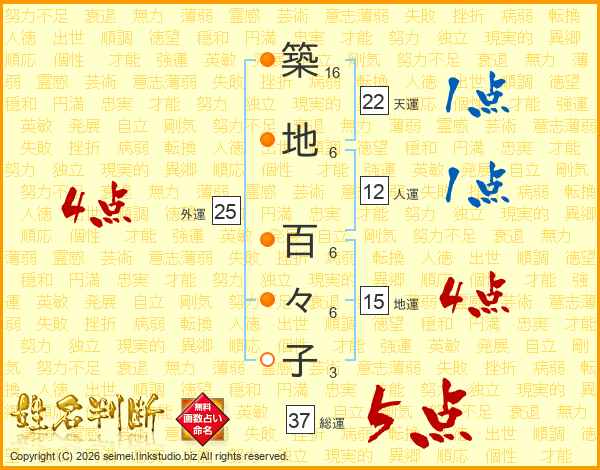 築地百々子さんの総運は37画の5点!