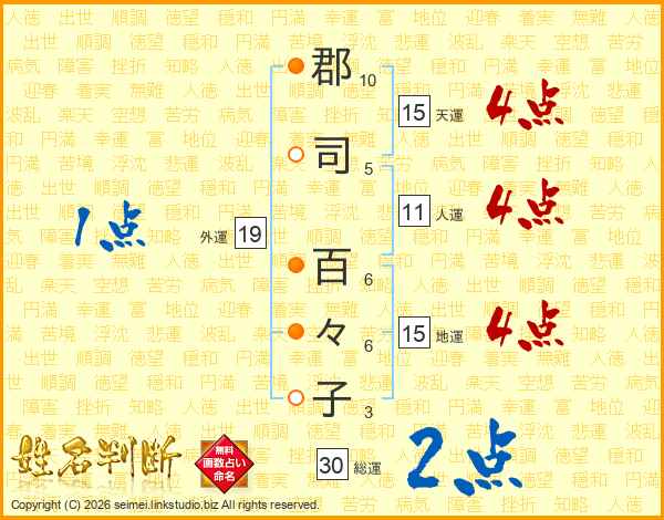 郡司百々子さんの総運は30画の2点!
