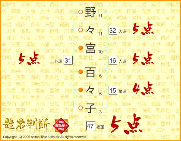 野々宮百々子さんの総運は47画の5点!