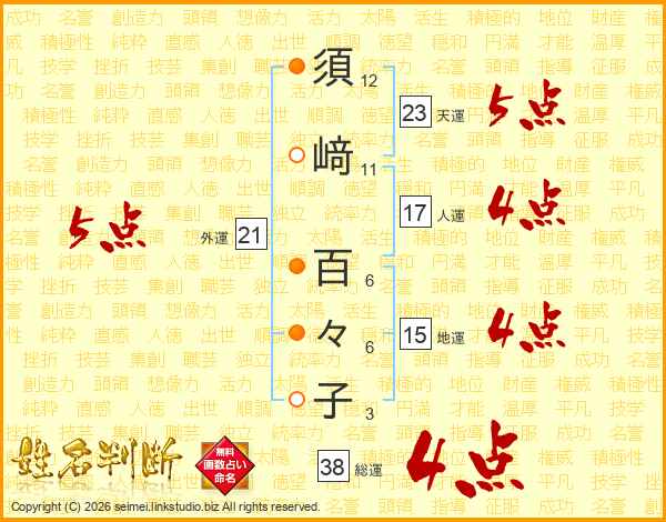 須﨑百々子さんの総運は38画の4点!