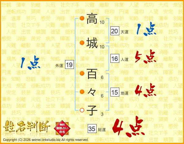 高城百々子さんの総運は35画の4点!