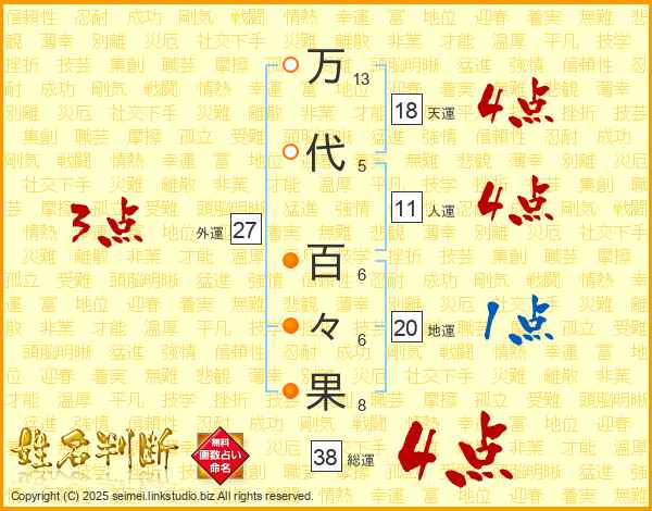 万代百々果さんの総運は38画の4点!