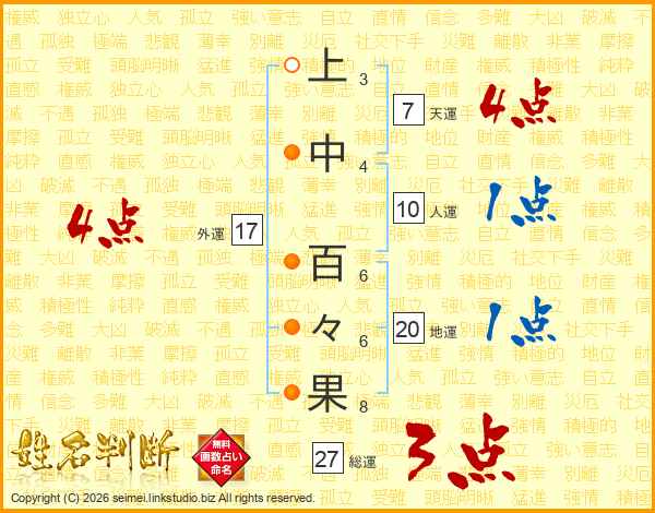 上中百々果さんの総運は27画の3点!