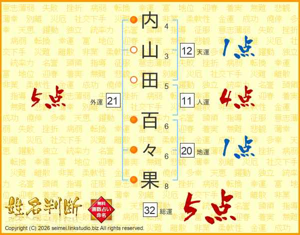 内山田百々果さんの外運は21画の5点!