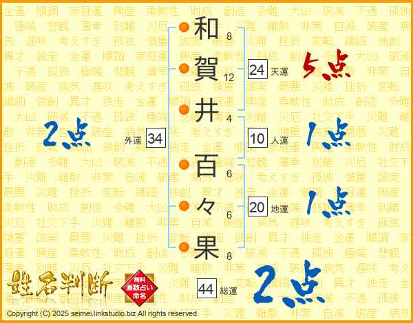 和(8画)賀(12画)井(4画) 百(6画)々(6画)果(8画)