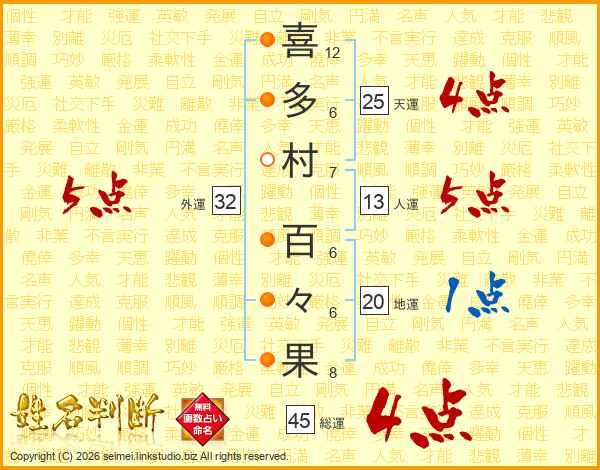 喜多村百々果さんの総運は45画の4点!