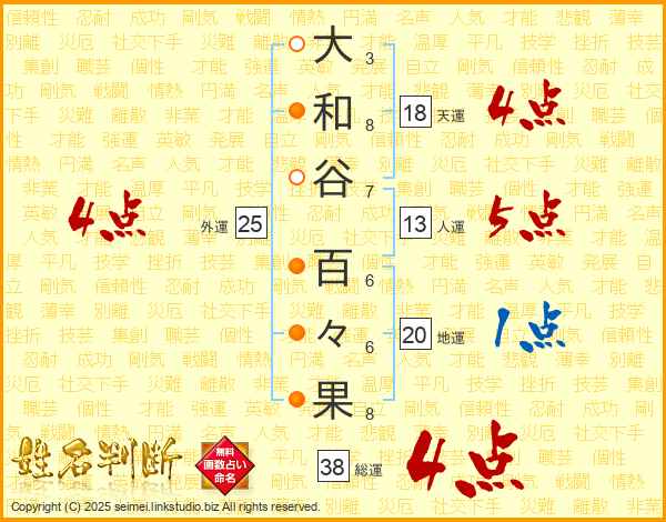 大和谷百々果さんの総運は38画の4点!