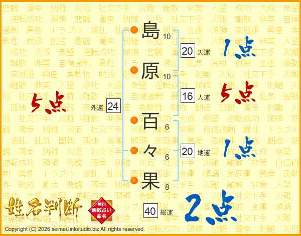 島(10画)原(10画) 百(6画)々(6画)果(8画)