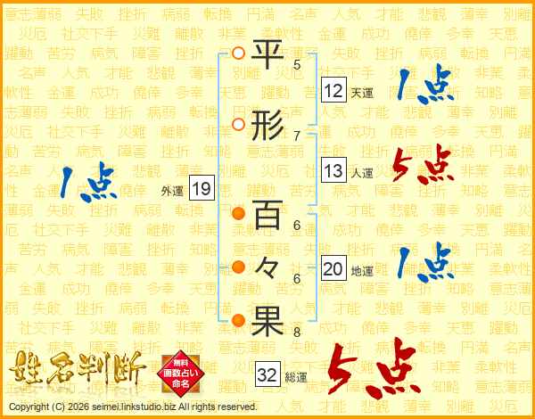 平(5画)形(7画) 百(6画)々(6画)果(8画)
