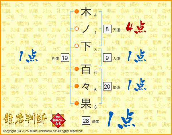 木ノ下百々果さんの総運は28画の1点!