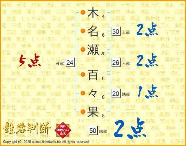 木名瀬百々果さんの外運は24画の5点!