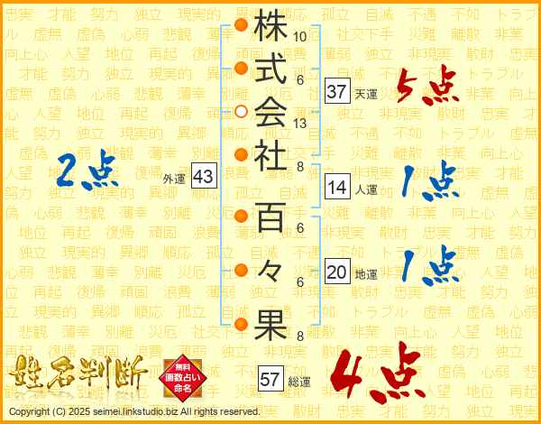 株(10画)式(6画)会(13画)社(8画) 百(6画)々(6画)果(8画)