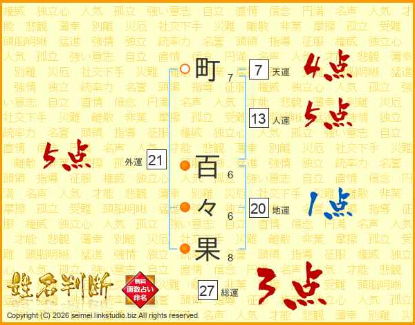 町百々果さんの総運は27画の3点!