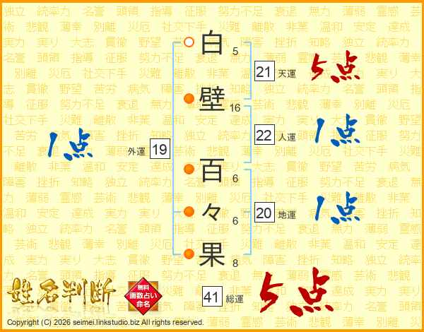 白壁百々果さんの総運は41画の5点!