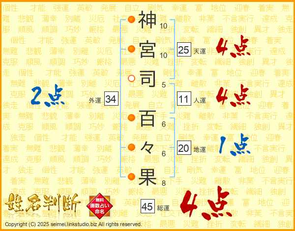 神宮司百々果さんの天運は25画の4点!
