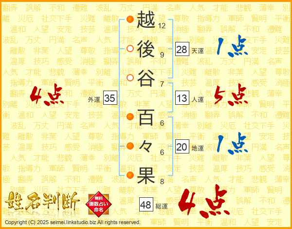 越後谷百々果さんの総運は48画の4点!