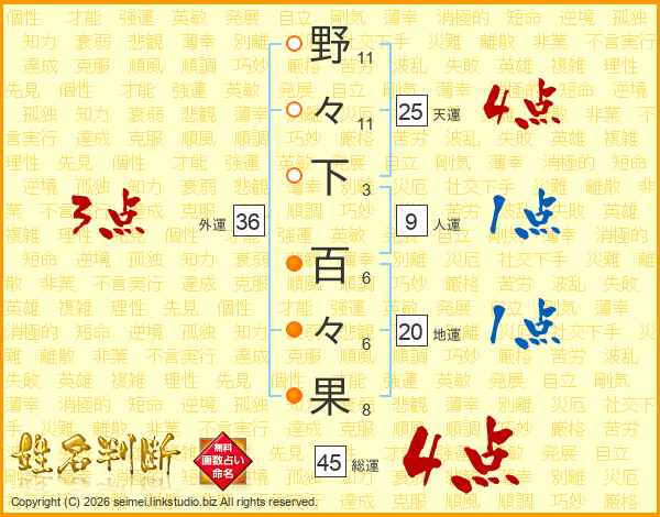 野々下百々果さんの総運は45画の4点!