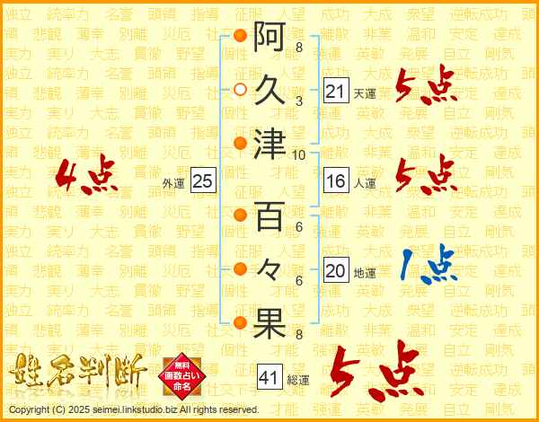 阿(8画)久(3画)津(10画) 百(6画)々(6画)果(8画)