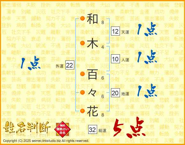 和(8画)木(4画) 百(6画)々(6画)花(8画)