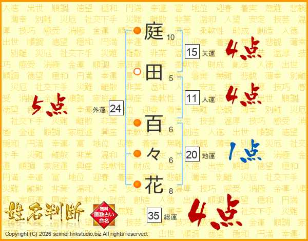 庭田百々花さんの外運は24画の5点!