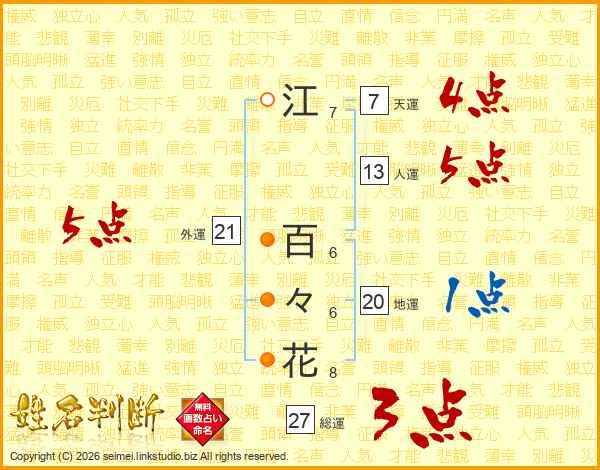 江百々花さんの総運は27画の3点!