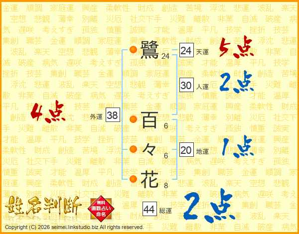 鷺百々花さんの総運は44画の2点!