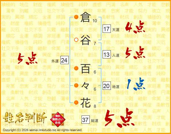 倉谷百々花さんの外運は24画の5点!