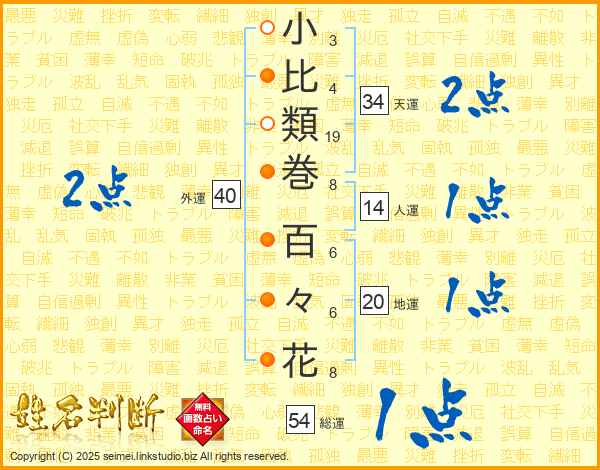 小(3画)比(4画)類(19画)巻(8画) 百(6画)々(6画)花(8画)