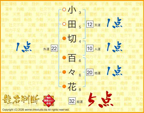 小(3画)田(5画)切(4画) 百(6画)々(6画)花(8画)