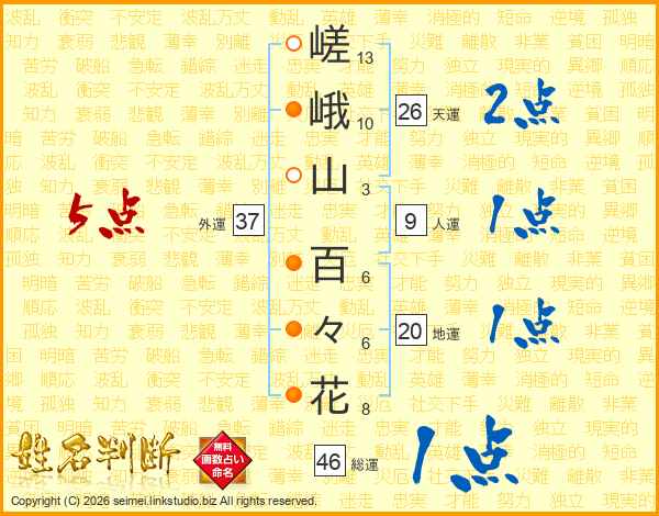 嵯峨山百々花さんの総運は46画の1点!